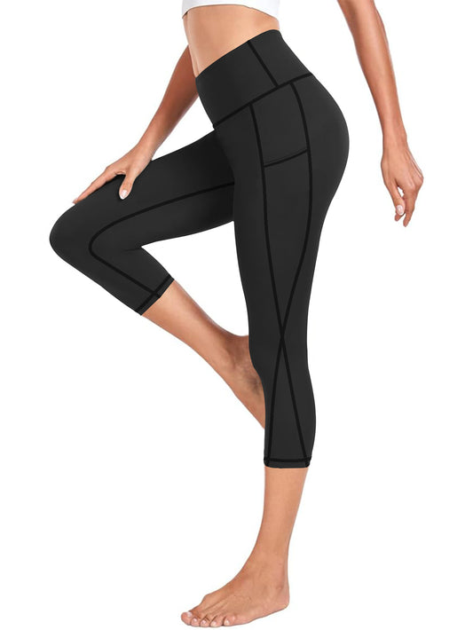 Women's High Waisted Yoga Capri Pants with Pockets Tummy Control Workout Leggings for Women Moisture Wicking 4-Way Stretch Athletic Compression Shorts for Gym Running Pilates Plus Size S-XXL